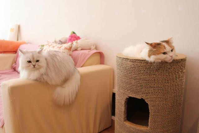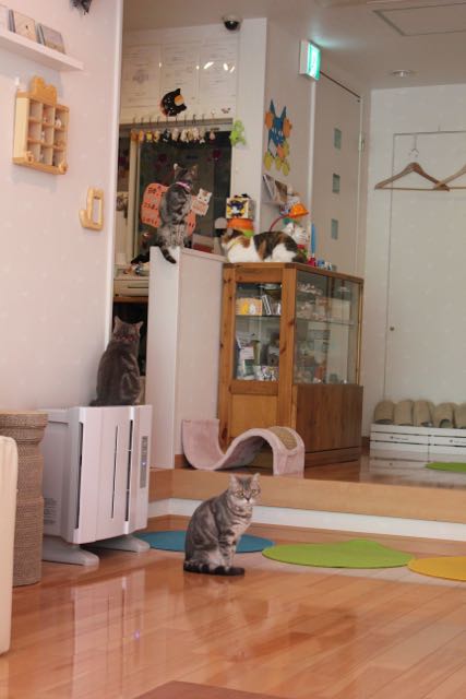 First of all, I had to call to reserve a spot for the one I went to in Akihabara; as you can guess, it was pretty packed. Packed with kitties, but also with visitors, who were all sitting on the ground distributing treats to the cats (whom some knew by name, by the way), running cat videos on their phones, and playing. The other cat café in Shibuya was much bigger, with a lot of natural light, and my sister and I had the place to ourselves: a much more relaxing experience. At both places, I paid a rate by the half hour and there was a one drink (coffee, tea, whatever) minimum.