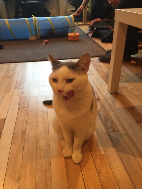 Here in Montreal, cat cafés are actually more what I had first expected them to be like when I first went to the ones in Japan: actual cafés where you can sit and read, or chat with a friend, and where there just happens to be kitties roaming.