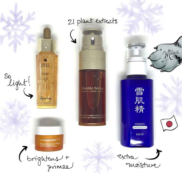Winter can wreak havoc on your skin, not only because of harsh weather, but also due to the dehydrating effect of indoor heating everywhere you go. Although I have normal, pretty hassle-free skin, I like to give it special attention and double up on moisture during the winter months. Here are some of the skincare steps I do every morning before finishing with my moisturizer (and SPF protection, if I’m going out!).