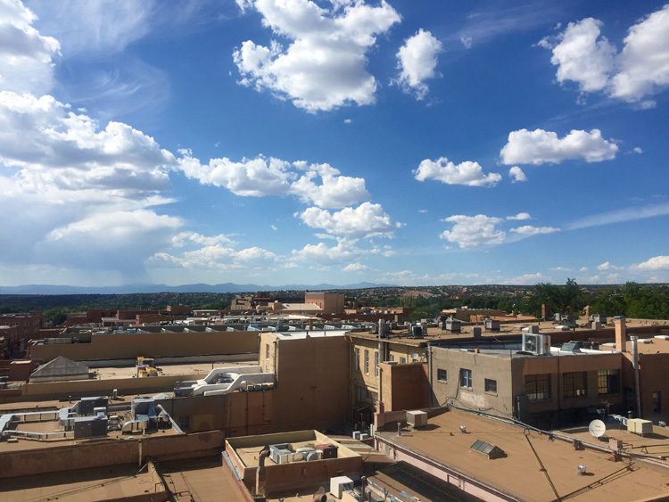 May 3, 2016 Travel Snaps: Beautiful Santa Fe! 750 × 563 More-La-Fonda The view from the Bell Tower Bar at La Fonda on the Plaza