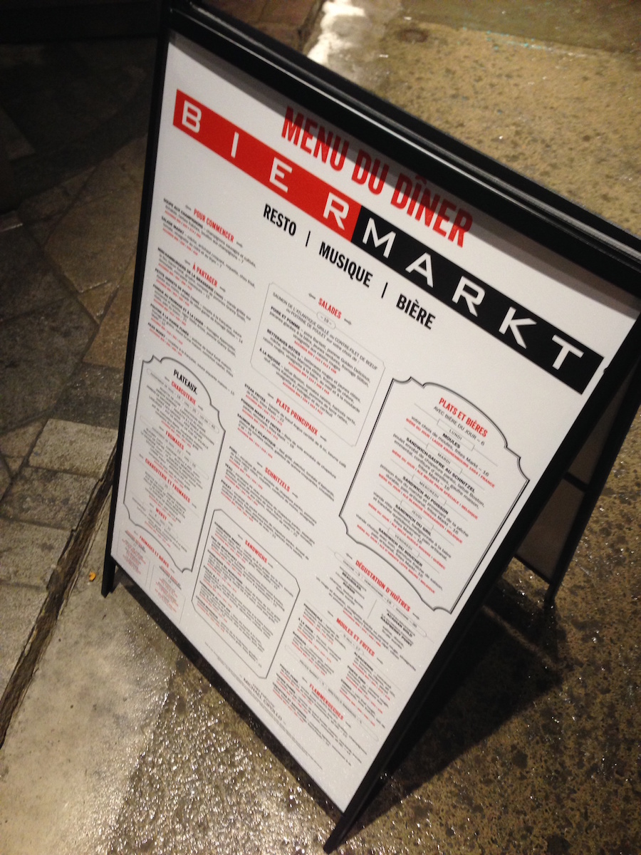 Pour goûter à leur impressionnante collection de plus de 150 marques de bières en provenance de plus de 30 pays, dont une sélection exclusive de 12 bières qui ne sont offertes qu’au Bier Markt au Québec. Notamment, la Früli à la fraise et au blé et la Delirium Tremens, deux bières belges dont un mélange savoureux était le premier verre servi lors de la soirée d’ouverture. Le résultat était fruité et exquis, sans être trop sucré. Voilà la preuve que même ceux qui ne se considèrent pas comme des buveurs de bière (comme moi!) peuvent y trouver leur compte.